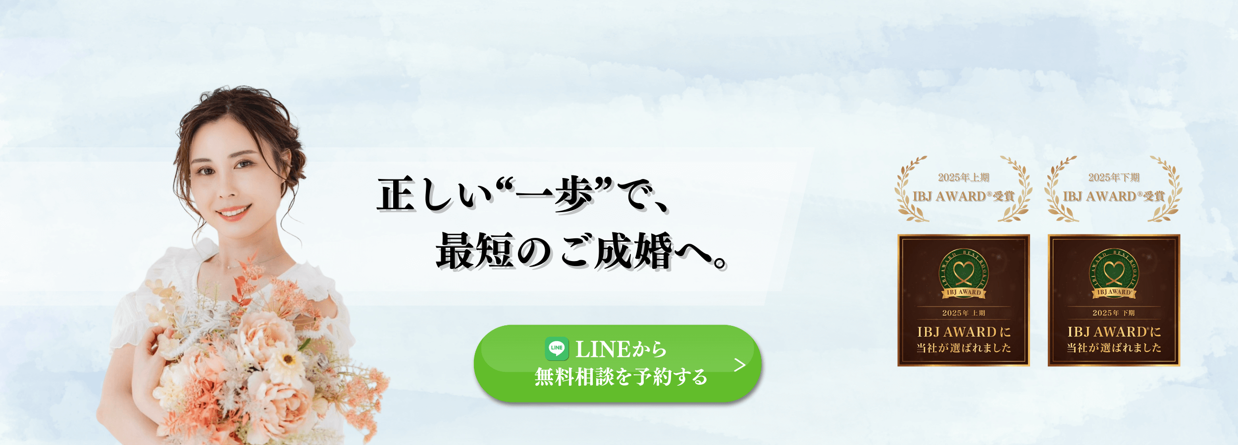 開業以来、IBJ AWARD®︎を連続受賞。その実績を支えているのは、会員様の一歩一歩の“行動”です。婚活に必要なことは意外とシンプル。でも…恋愛経験や状況は人によって違います。“同じアドバイス”で全員が結婚できるわけがありません。「誰かに聞きたいけど聞けなかった」「頑張ったのに結果が出なかった」——そんな悩みを抱えるあなたに寄り添い、成婚まで「自走できる力」を育みます。Marry Celebrateでは単に数をこなすのではなく、一つひとつの出会いを大切に、あなたらしい結婚を一緒に叶えます。
